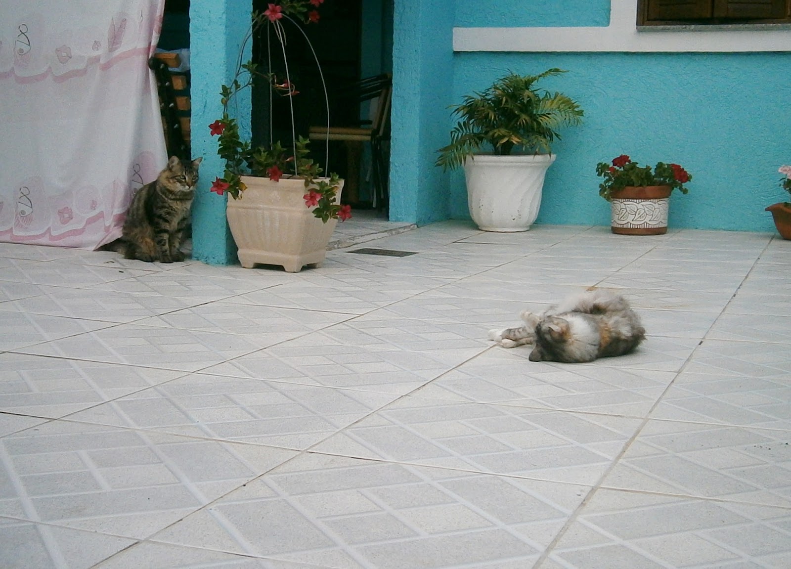 Puxa vida eu aqui já imaginando o violino tocando, corações românticos e um lindo abraço felino cheio de amor entre esses dois lindos gatinhos, mas me acabei de rir da cena, ficou ótimo.